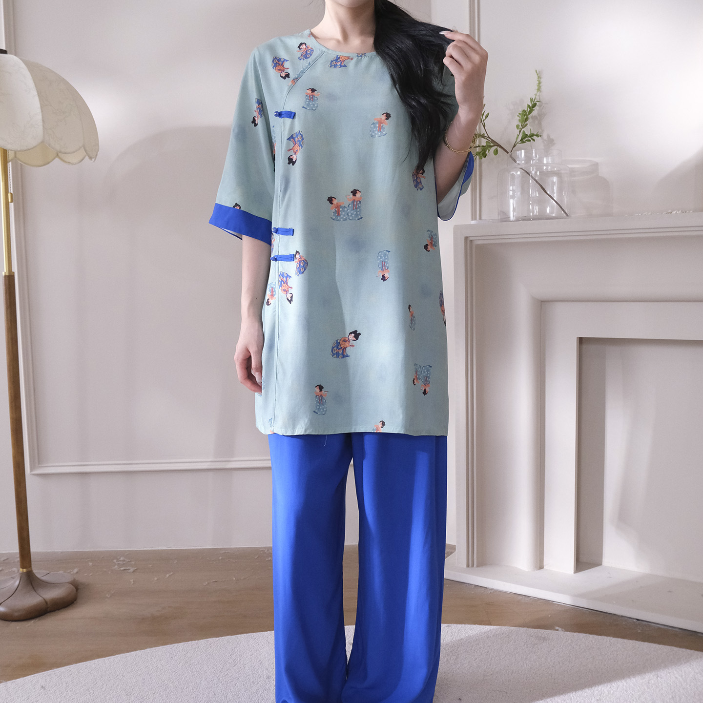 5分鐘前【均碼40-80公斤可穿】可外穿新中式國風復古人棉套裝 蒼藍紅