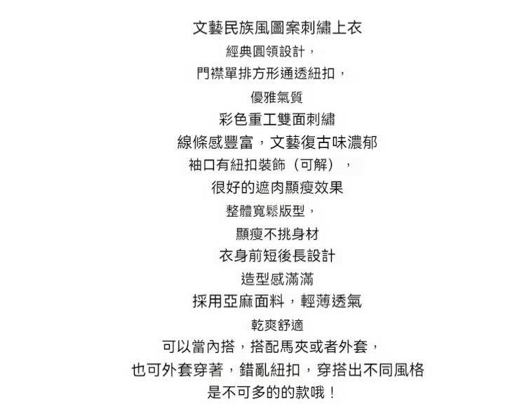 2分鐘前新中式國風刺繡棉麻襯衫 白色+紅色