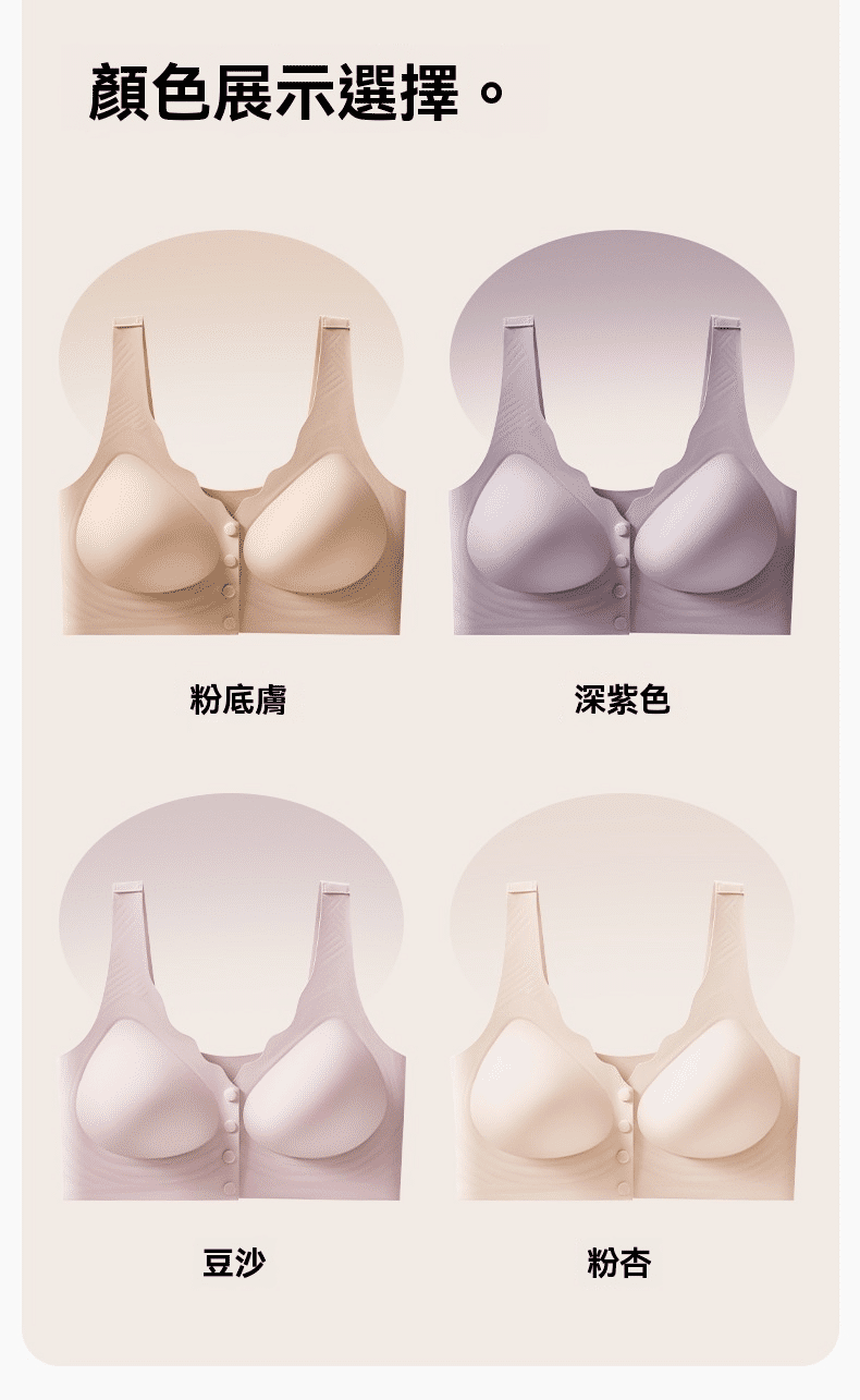 4分鐘前【量販裝3件均價366】特調前搭扣無痕粉底液隱形文胸 粉底膚+深紫色+豆沙