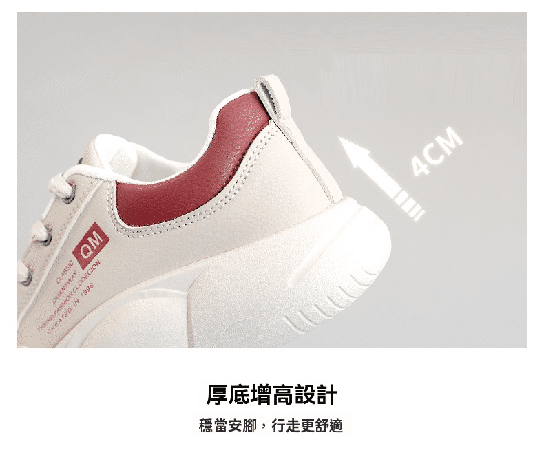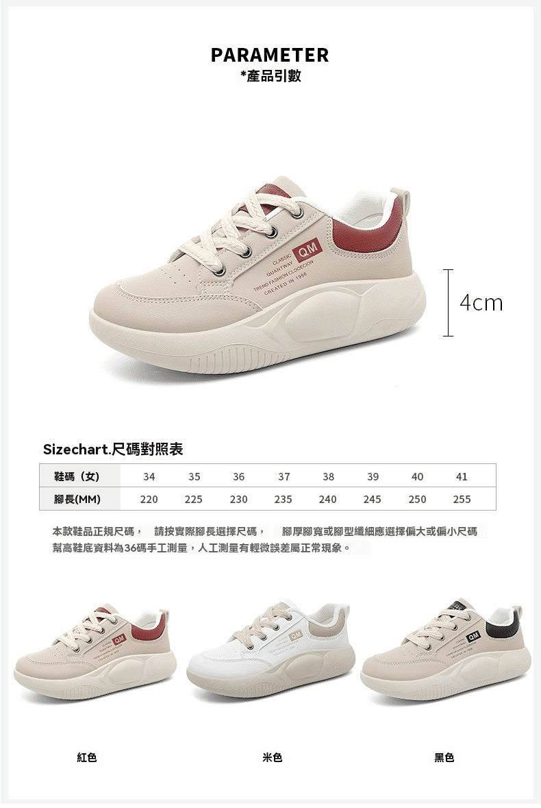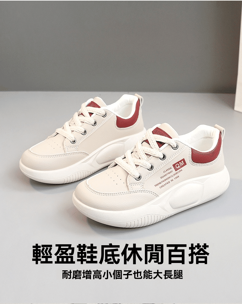 4分鐘前[【買兩雙更划算!到手NT$699/雙】四季爆款厚底增高耐磨透氣休閒小白鞋 兩雙 紅色+米色