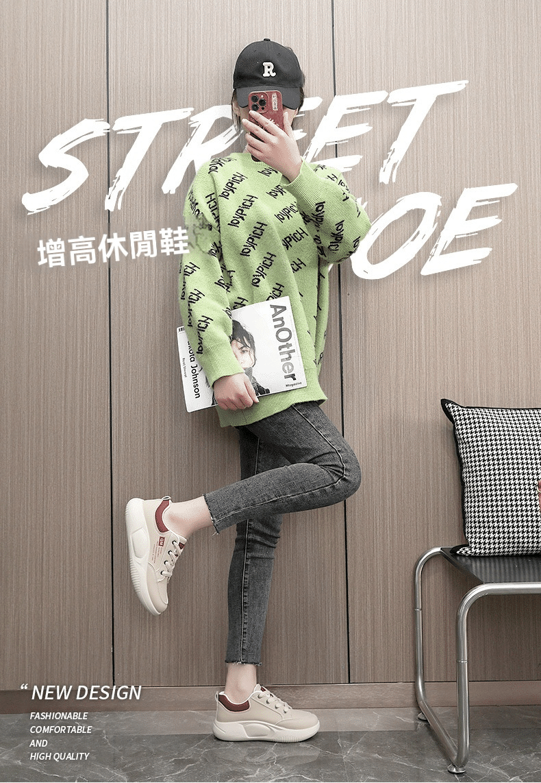 3分鐘前四季爆款厚底增高耐磨透氣休閒小白鞋 一雙 米色