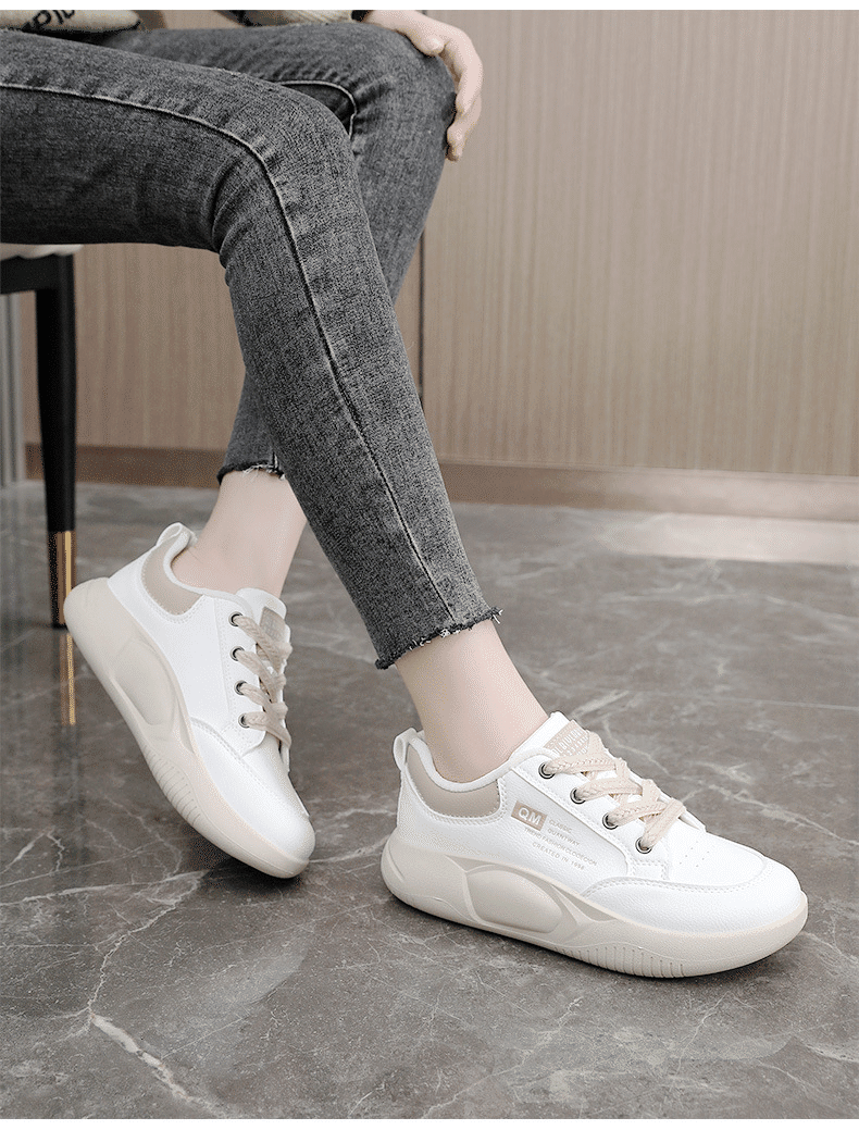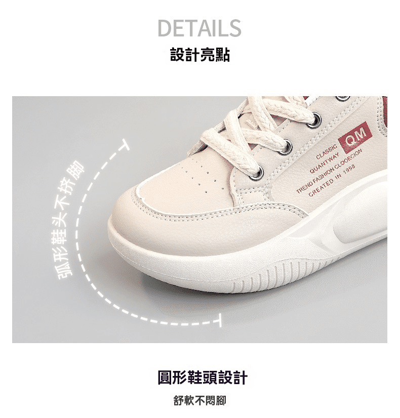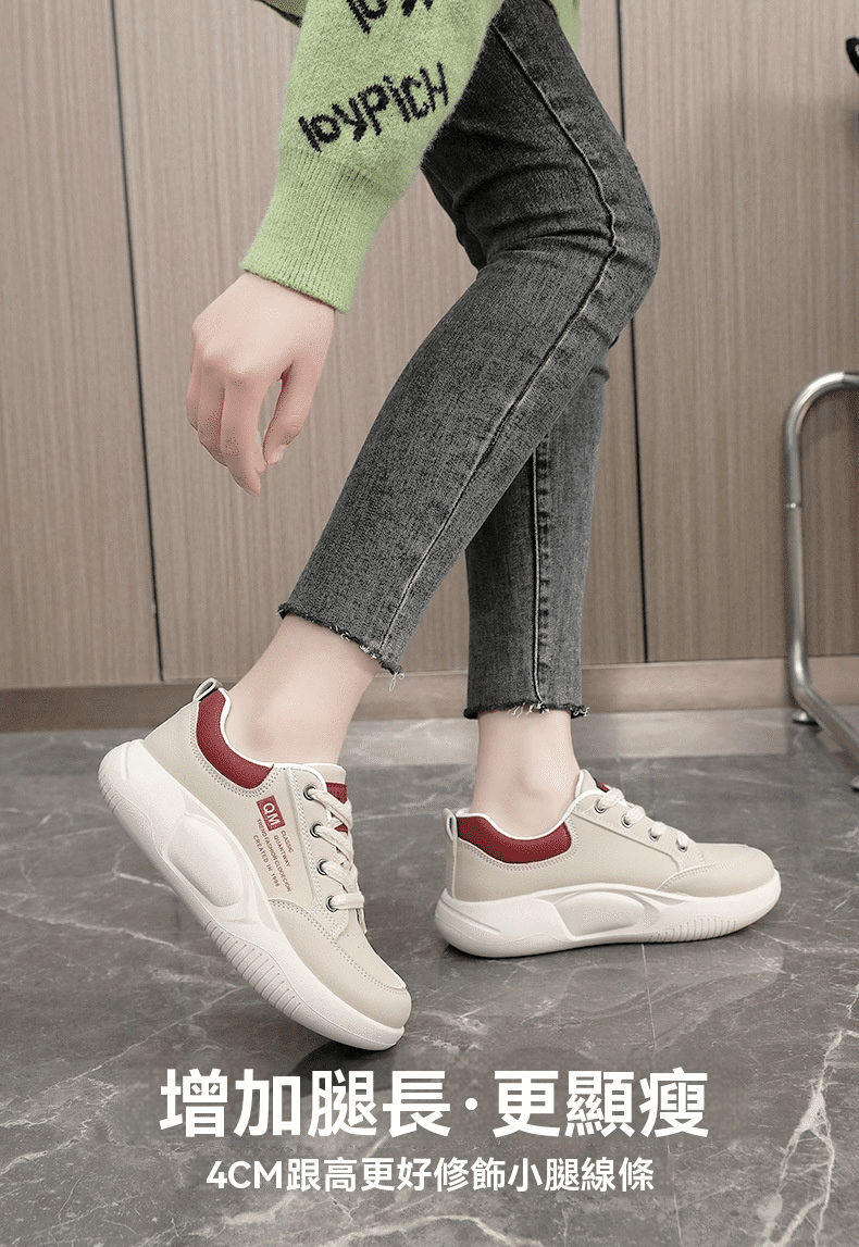 1分鐘前四季爆款厚底增高耐磨透氣休閒小白鞋 一雙 米色