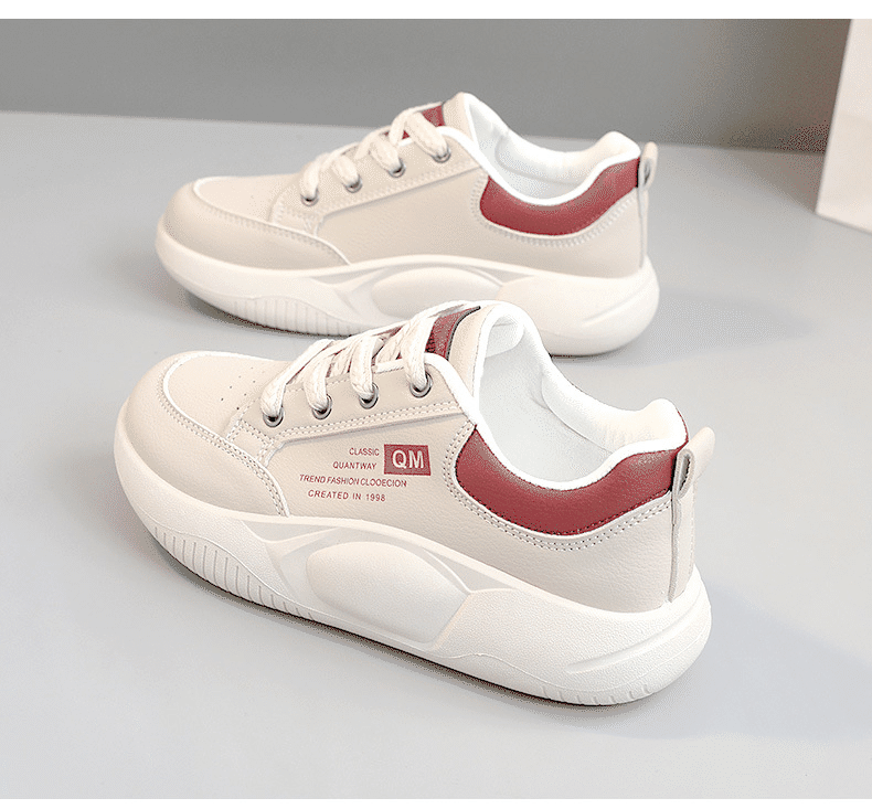 5分鐘前[【買兩雙更划算!到手NT$699/雙】四季爆款厚底增高耐磨透氣休閒小白鞋 兩雙 紅色+米色