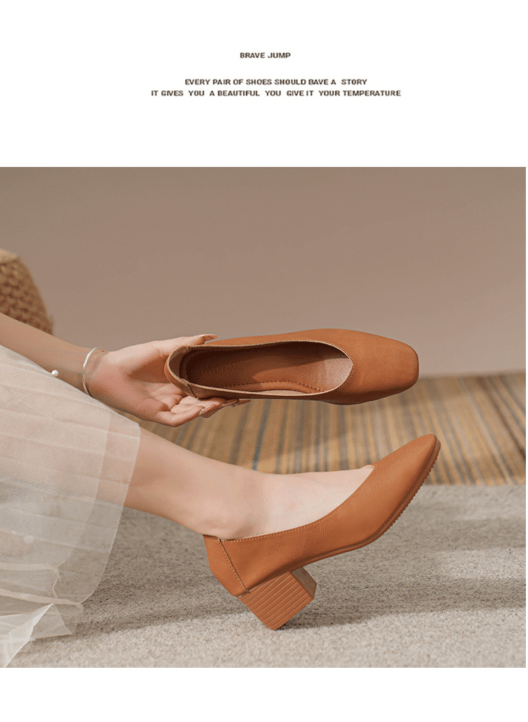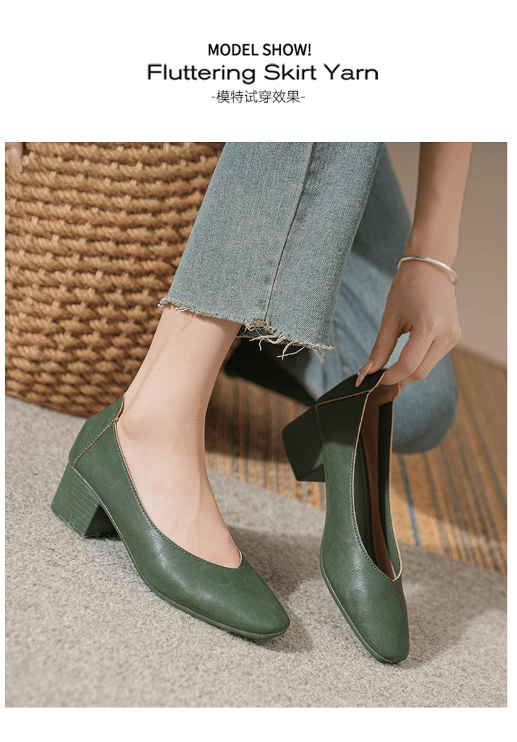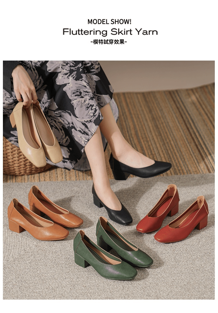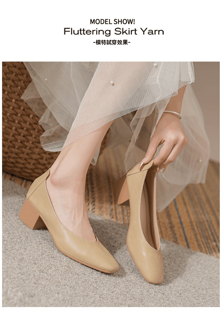 法式優雅瑪麗珍粗跟女鞋