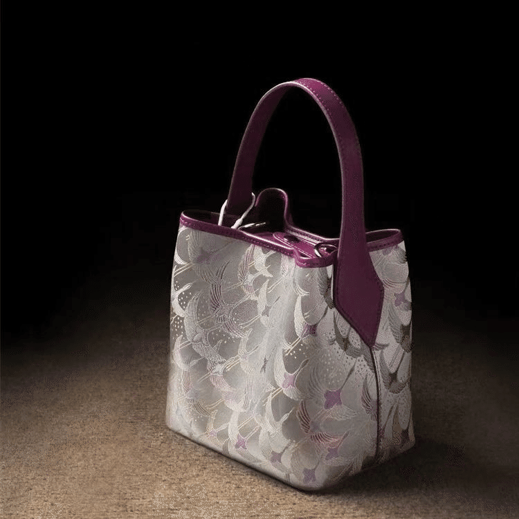 1分鐘前新中式宋錦二層牛皮雙帶手提水桶包 紫色(尺寸:長17cm*寬11cm*高17cm)