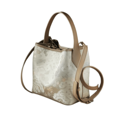 半小時前新中式宋錦二層牛皮雙帶手提水桶包 咖色 (尺寸:長17cm*寬11cm*高17cm)