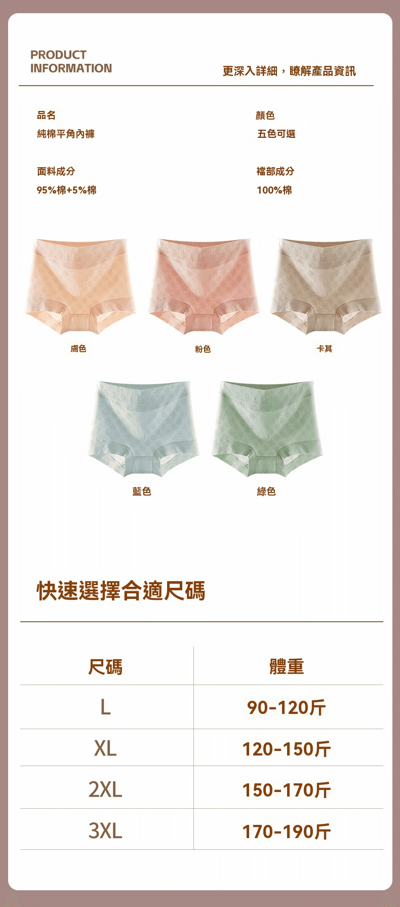 3分鐘前女士中高腰小平角純棉內褲 5條裝(顏色隨機)