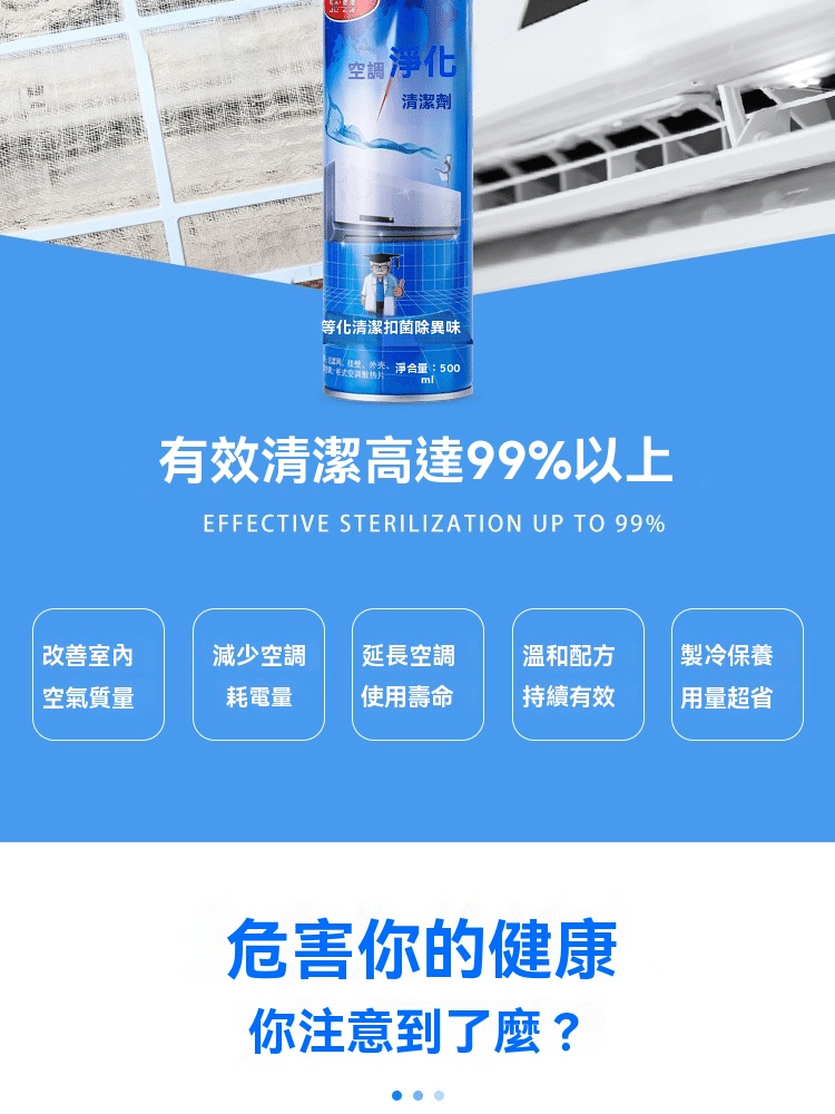 4分鐘前【送空調接水袋2個】免拆洗強力去污空調清洗劑 6瓶裝(500ML/瓶)
