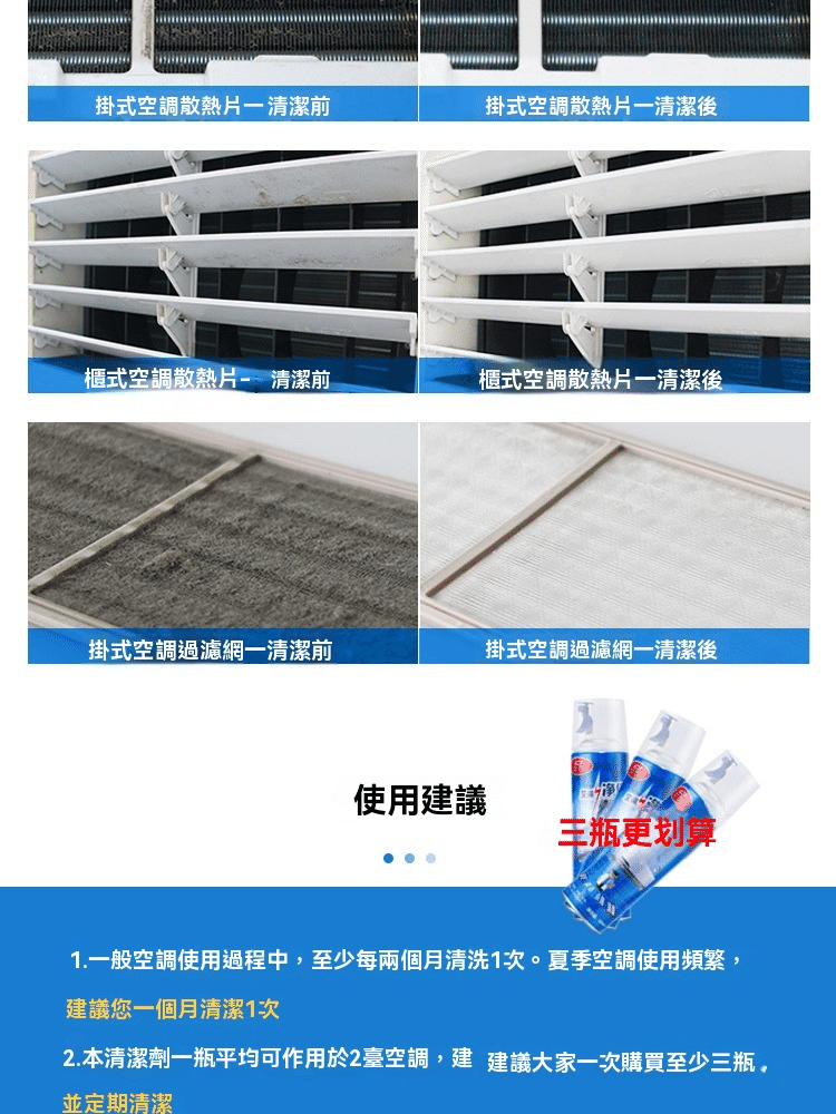 2分鐘前【送空調接水袋1個】免拆洗強力去污空調清洗劑 3瓶裝(500ML/瓶)