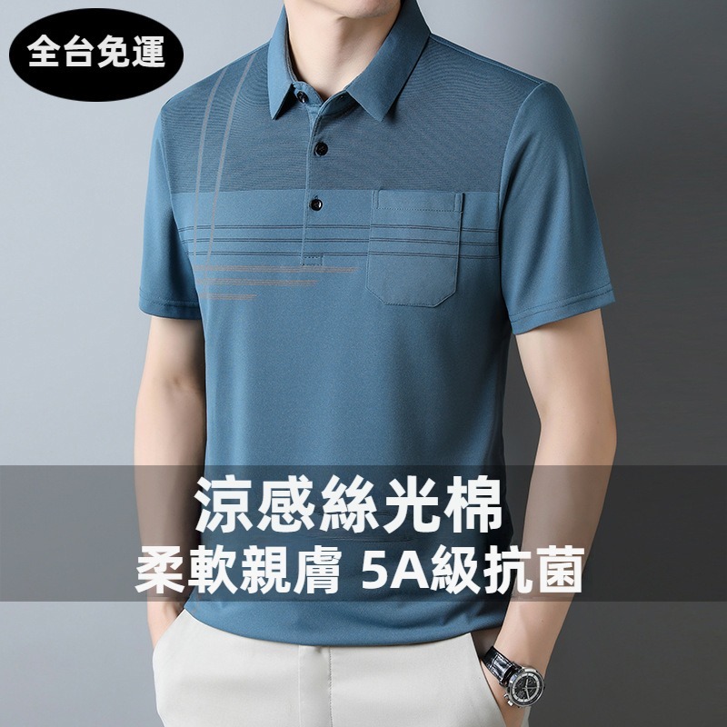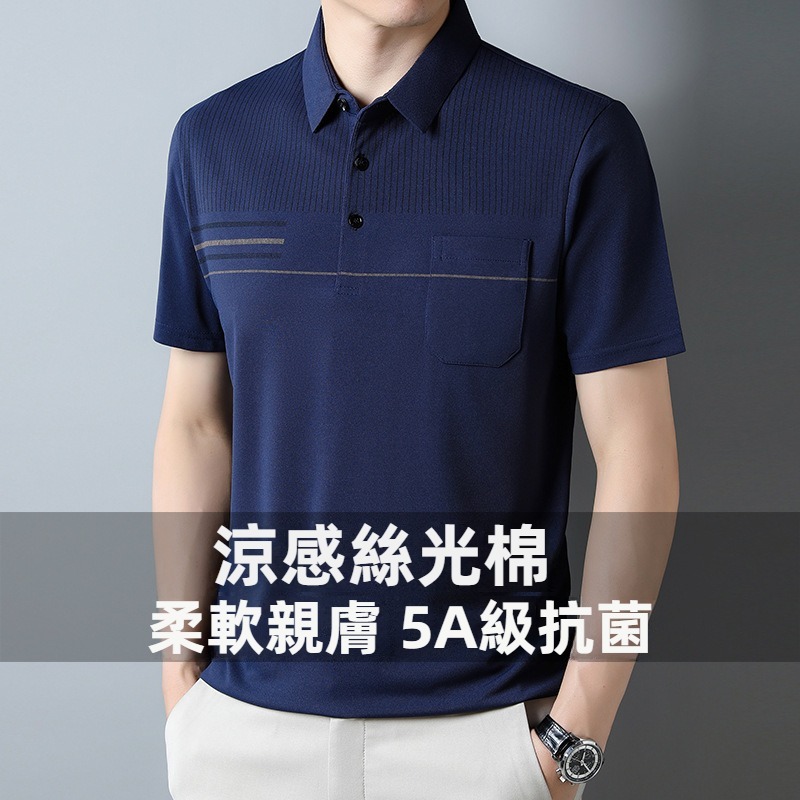 5分鐘前男士5A級抗菌涼感絲光棉短袖POLO衫一件 藍色 尺碼:L/110/170 (建議體重115-130斤)