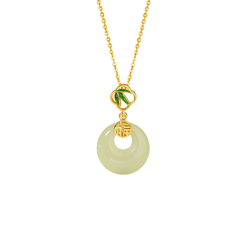 3分鐘前S925純銀和田玉吊墜項鏈-節節高升