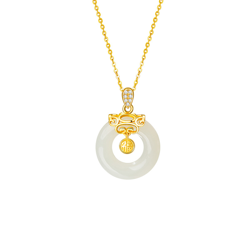 1分鐘前S925純銀和田玉吊墜項鏈-福牌如意