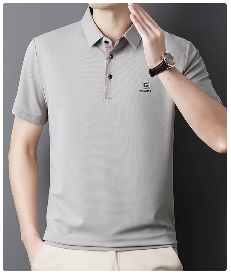 半小時前男士桑蠶絲翻領T恤一件 總裁灰 尺碼:3XL (建議體重80-90公斤)